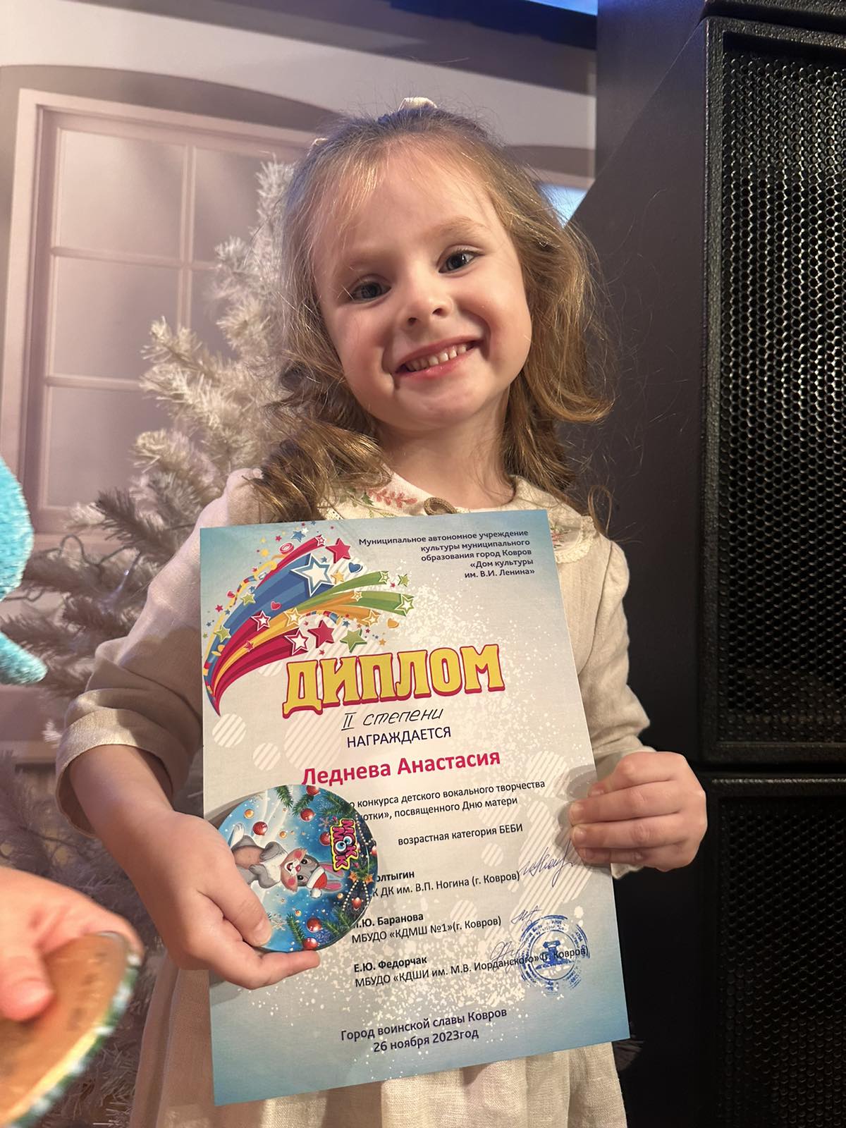 2 место у Ледневой Анастасии за исполнение песни "Хорошо рядом с мамой".