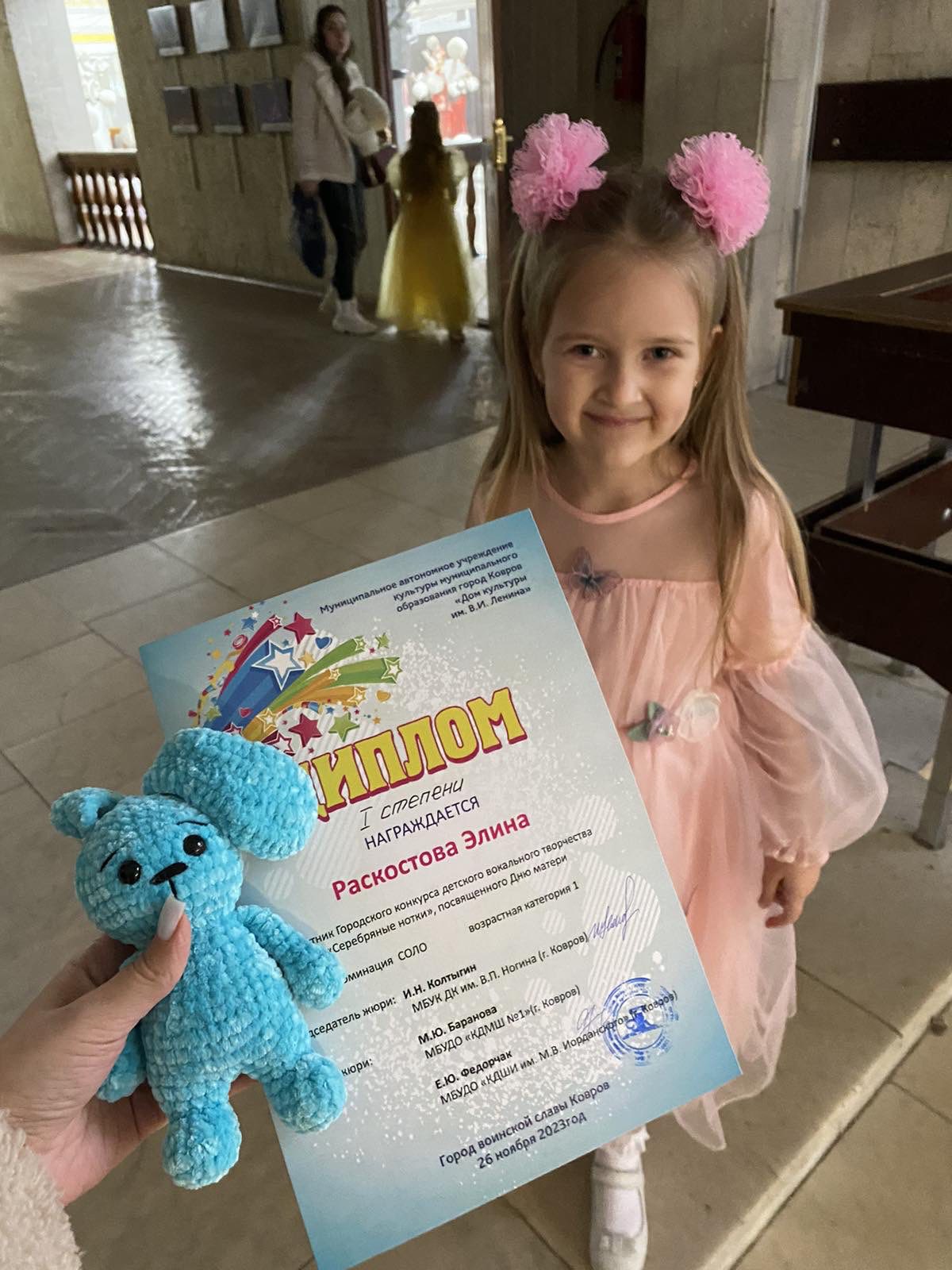 В номинации "Соло" Раскостова Элина заняла 1 место с песней "Мамочка".